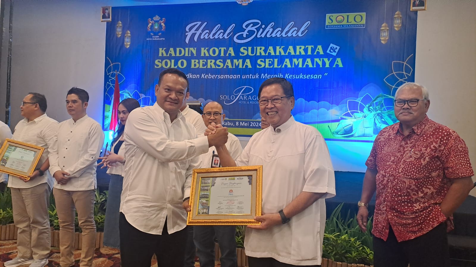 Pada halal bihalal yang mengangkat tema Wujudkan Kebersamaan untuk Meraih Kesuksesan hadir seluruh pengurus dan anggota Kadin, SBS, Forkompimda dan stake holder Kota Solo.
