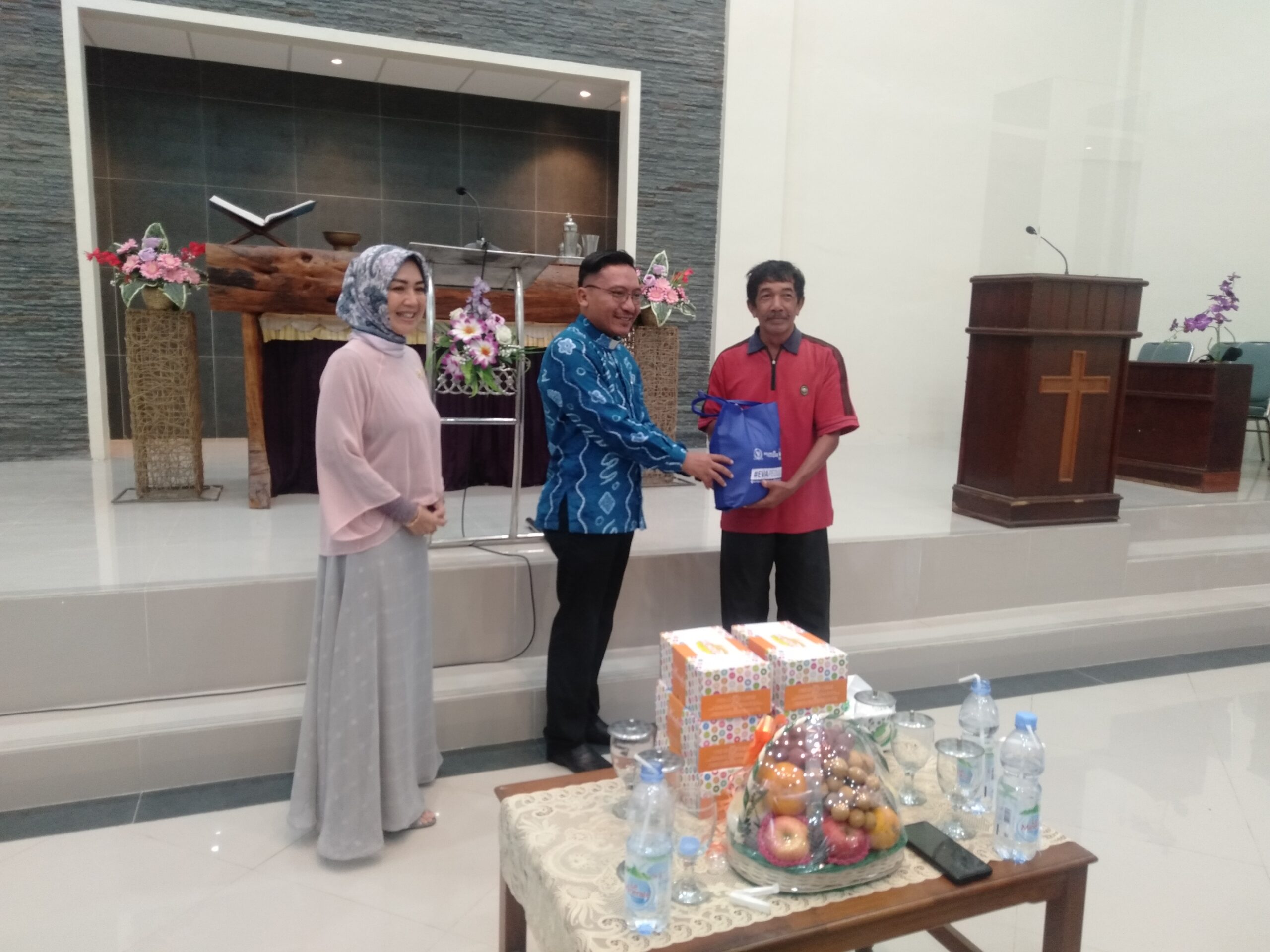 Selain silaturahmi Eva juga membagikan sembako bagi masyarakat di sekitar GKJ Danukusuman.